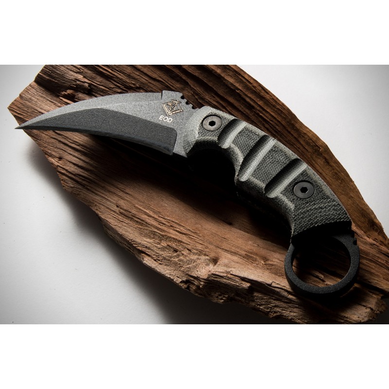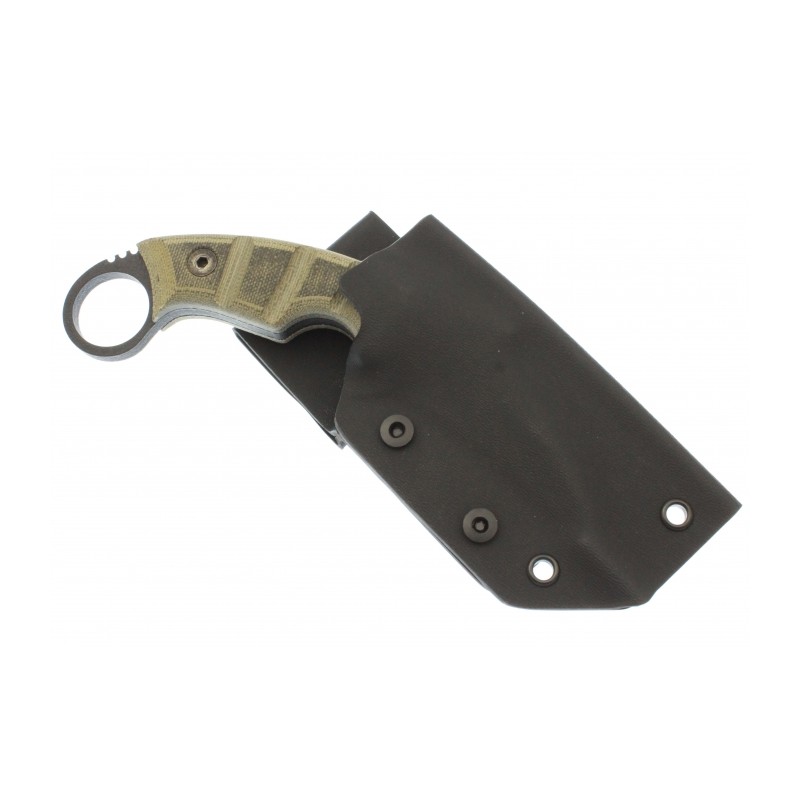 Description The Ranger line is a set of combat and survival knives and tools designed and built for combat deployment in the most unforgiving terrain on the planet. All Ranger knives feature a thick blade made from robust carbon steel, a durable micarta handle and a MOLLE compatible sheath. Specifications Blade Material 5160 Carbon Steel Overall Length 7.5 in ( 19.1 cm) Blade Length 3.6 in (9.3 cm) Blade Thickness 0.250 in (0.635 cm) Blade Color Black Blade Finish Powder Coat Blade Grind Flat Bevel w/ Secondary Flat Bevel Edge Type Plain Hardness 53-55 HRC Handle Material Micarta Handle Color Green Sheath Material Kydex Sheath Color Black Sheath Type Belt Loop Lock Type Fixed Country of Origin United States of America